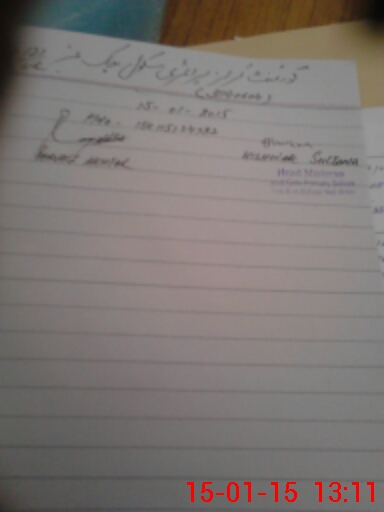 | Name: Sh**** Pe**** Designation: (School Headmaster's/Headmistress's) Est Phone/Cell Number: 03**** |