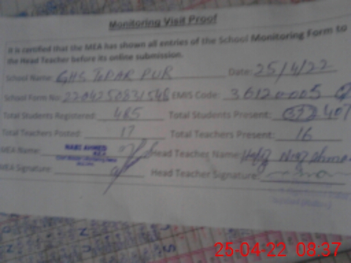 | EMIS Code: 36120005 | Name of School: GHS TODAR PUR BASTI CHUJJU SHAH SHUJABAD | |||