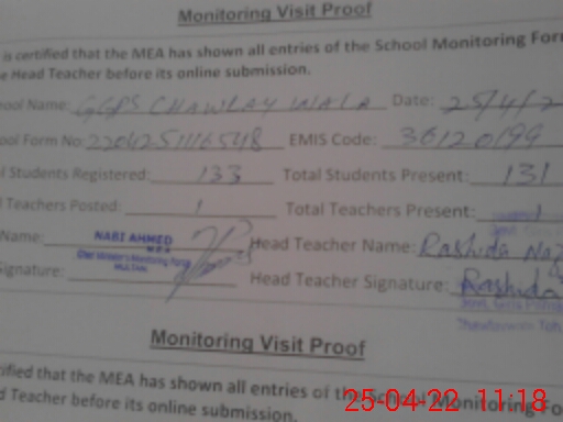 | EMIS Code: 36120199 | Name of School: GGPS CHALAY WALA SHUJABAD DISTT. MULTAN | |||