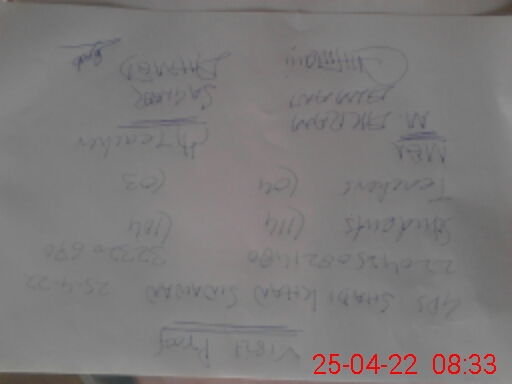 | Monitoring Date: 25-04-2022 | Start Time: 25-04-2022 08:14 AM | End Time: 25-04-2022 08:34 AM | Name of MEA: M.Ak**** Al**** | |