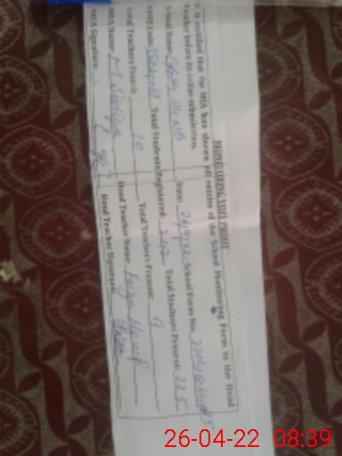 | Certified that this School was Inspected by the Undersigned MEA/DMO Today and the Information Stated Above is as Per Record. | |||||