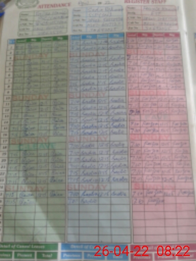 | CNIC | Full Name | Designation | R/C | Absence During Last Calender Month |