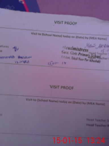 | Attendance Register | Head Teacher | MEA with School | Visit Proof |
