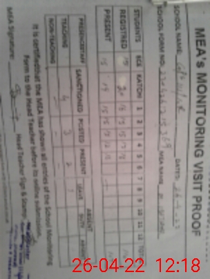 | Certified that this School was Inspected by the Undersigned MEA/DMO Today and the Information Stated Above is as Per Record. | |||||