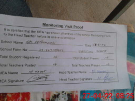 | EMIS Code: 31150158 | Name of School: GPS SETHANA WALI | |||