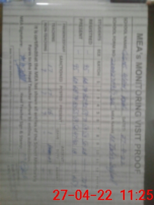 | Attendance Register | Head Teacher | MEA with School | Visit Proof |