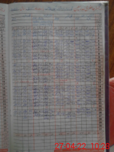 | CNIC | Full Name | Designation | R/C | Absence During Last Calender Month |