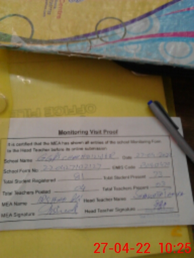 | Attendance Register | Head Teacher | MEA with School | Visit Proof |