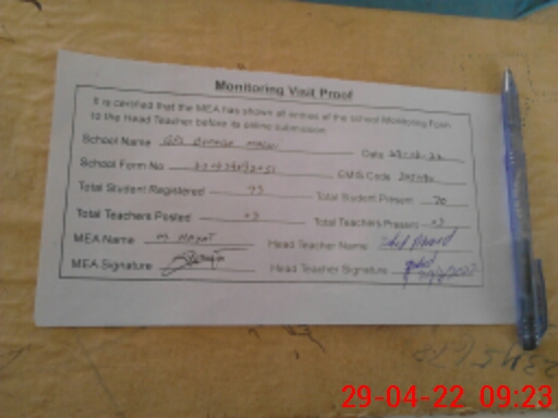 | Attendance Register | Head Teacher | MEA with School | Visit Proof |