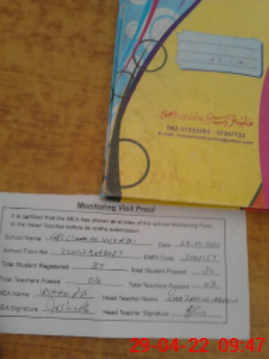 | Attendance Register | Head Teacher | MEA with School | Visit Proof |