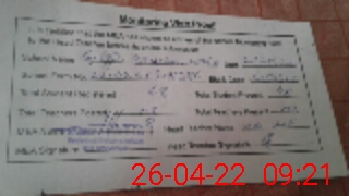 | Monitoring Date: 26-04-2022 | Start Time: 26-04-2022 09:09 AM | End Time: 26-04-2022 09:23 AM | Name of MEA: NA**** AH**** BN**** | |