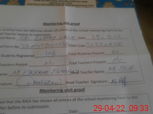 | EMIS Code: 32320698 | Name of School: GPS BUDHAY WALA | |||