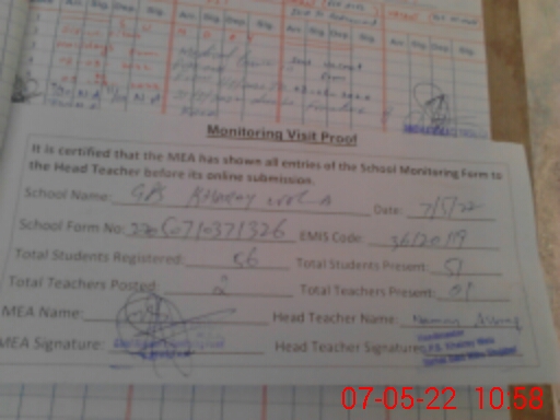 | Attendance Register | Head Teacher | MEA with School | Visit Proof |