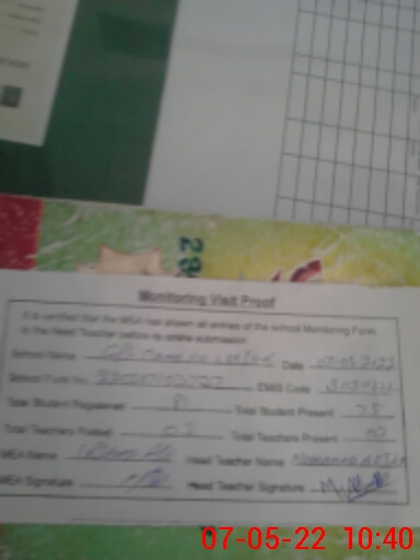 | Certified that this School was Inspected by the Undersigned MEA/DMO Today and the Information Stated Above is as Per Record. | |||||