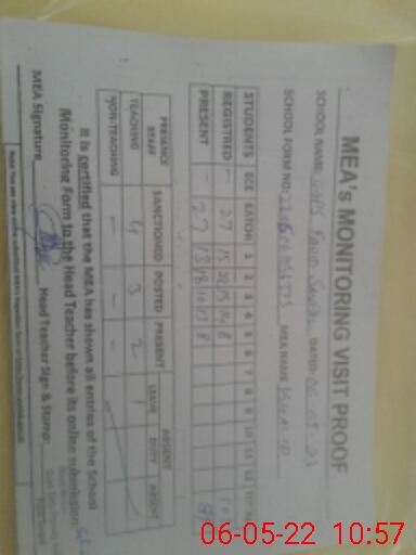 | Attendance Register | Head Teacher | MEA with School | Visit Proof |