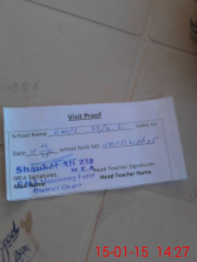 | Attendance Register | Head Teacher | MEA with School | Visit Proof |