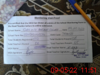 | Certified that this School was Inspected by the Undersigned MEA/DMO Today and the Information Stated Above is as Per Record. | |||||
