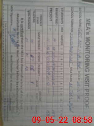 | Attendance Register | Head Teacher | MEA with School | Visit Proof |
