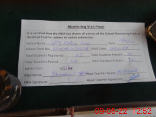 | EMIS Code: 34110179 | Name of School: GPS POLICE LINE | |||
