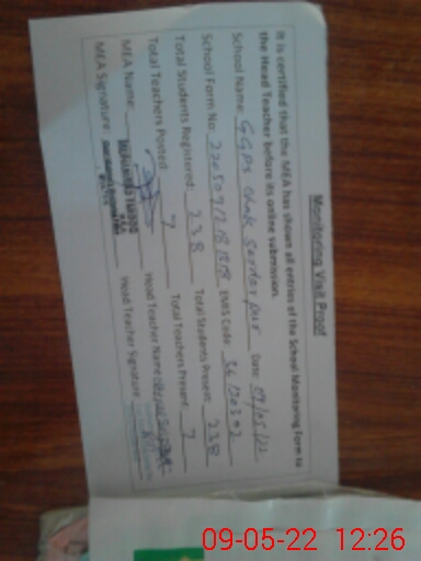 | Certified that this School was Inspected by the Undersigned MEA/DMO Today and the Information Stated Above is as Per Record. | |||||