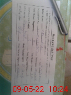 | Name: MTa**** Ja**** Designation: (School Headmaster's/Headmistress's) E S E Phone/Cell Number: 03**** |