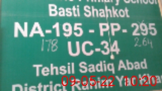 | PP No.: 264 | NA No.: 178 | Mauza: BAHDAR PUR | UC Name: ROSHAN BHAIT | UC No.: 21 |