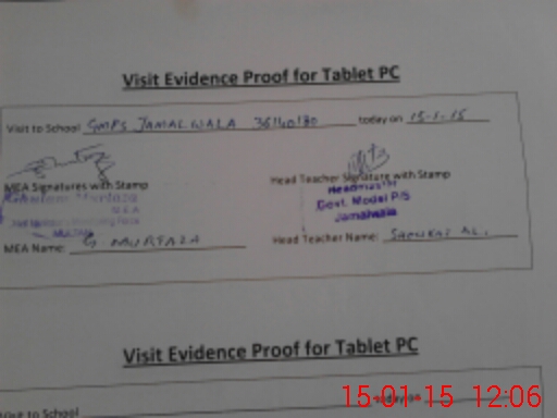 | Attendance Register | Head Teacher | MEA with School | Visit Proof |