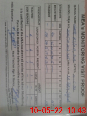 | Monitoring Date: 10-05-2022 | Start Time: 10-05-2022 10:12 AM | End Time: 10-05-2022 10:45 AM | Name of MEA: M.Ta**** Iq**** (S**** | |