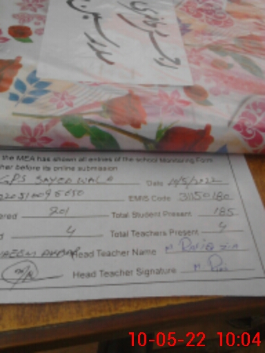 | EMIS Code: 31150180 | Name of School: GPS SAYED WALA | |||