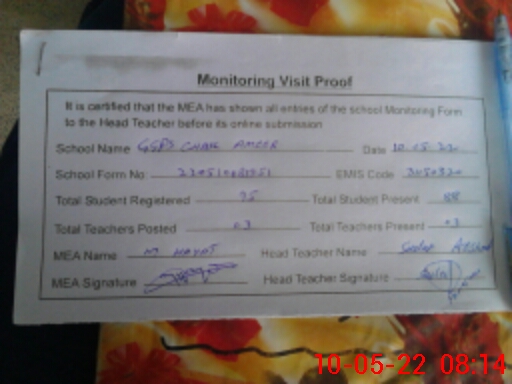 | Certified that this School was Inspected by the Undersigned MEA/DMO Today and the Information Stated Above is as Per Record. | |||||