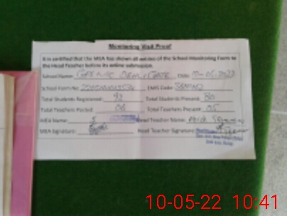| Monitoring Date: 10-05-2022 | Start Time: 10-05-2022 10:08 AM | End Time: 10-05-2022 10:41 AM | Name of MEA: SH**** AL**** | |