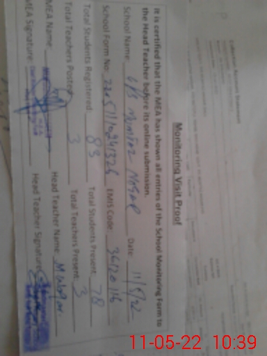 | Certified that this School was Inspected by the Undersigned MEA/DMO Today and the Information Stated Above is as Per Record. | |||||