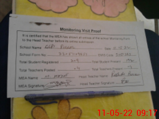 | Attendance Register | Head Teacher | MEA with School | Visit Proof |