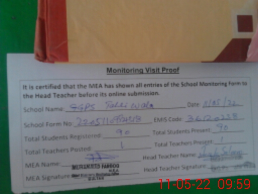 | EMIS Code: 36120238 | Name of School: GGPS TAHLI WALA SHUJABAD | |||