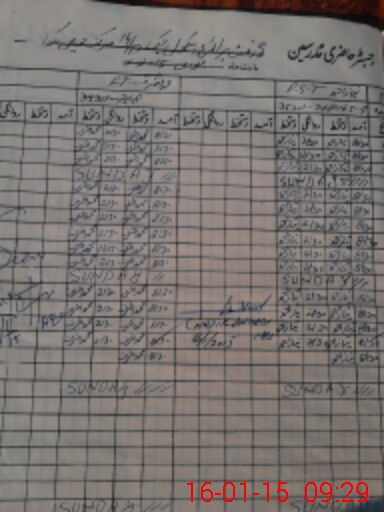 | CNIC | Full Name | Designation | R/C | Absence During Last Calender Month |