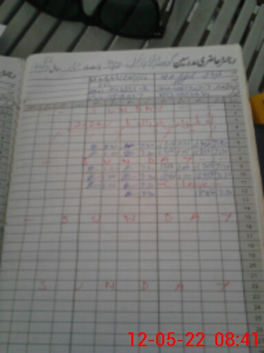 | CNIC | Full Name | Designation | R/C | Absence During Last Calender Month |