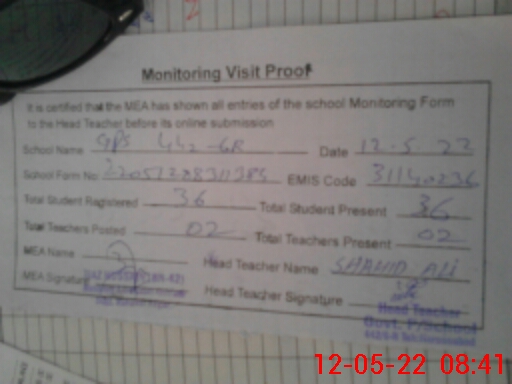 | Attendance Register | Head Teacher | MEA with School | Visit Proof |