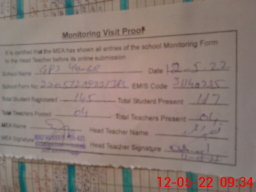 | EMIS Code: 31140235 | Name of School: GPS CHAK NO. 441/6-R | |||