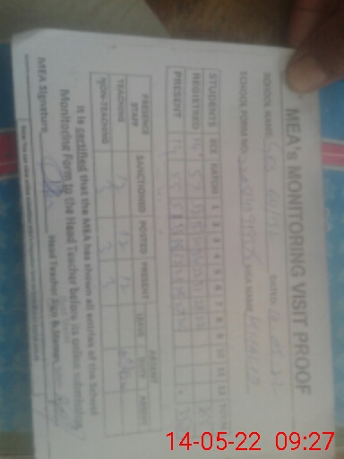 | Attendance Register | Head Teacher | MEA with School | Visit Proof |