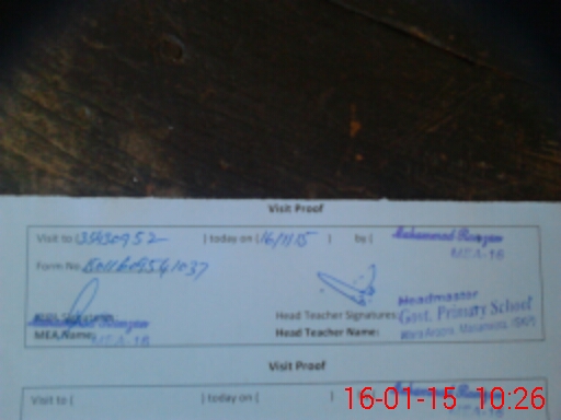 | Attendance Register | Head Teacher | MEA with School | Visit Proof |