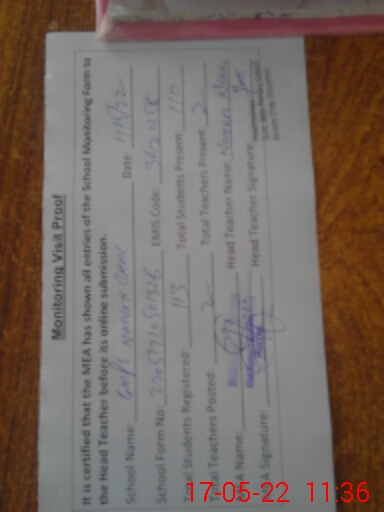 | Attendance Register | Head Teacher | MEA with School | Visit Proof |