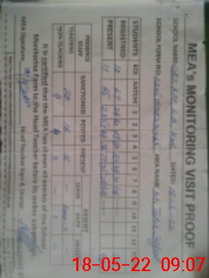| Monitoring Date: 18-05-2022 | Start Time: 18-05-2022 08:23 AM | End Time: 18-05-2022 09:10 AM | Name of MEA: M.Ta**** Iq**** (S**** | |