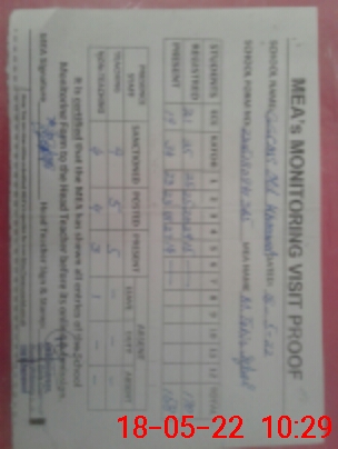 | Attendance Register | Head Teacher | MEA with School | Visit Proof |