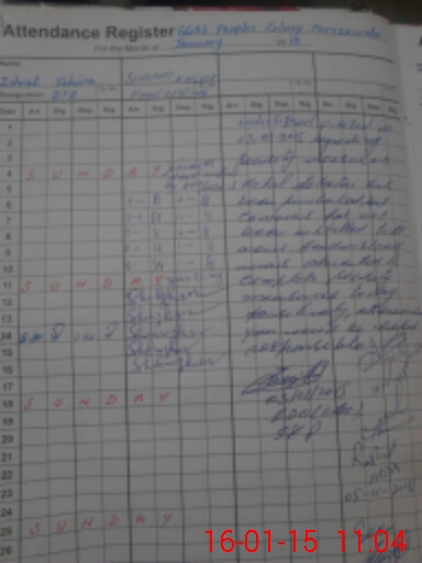 | CNIC | Full Name | Designation | R/C | Absence During Last Calender Month |