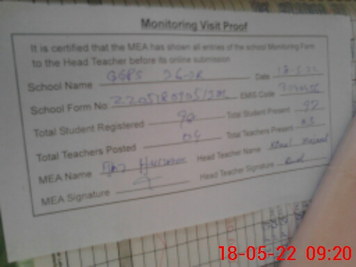 | Attendance Register | Head Teacher | MEA with School | Visit Proof |