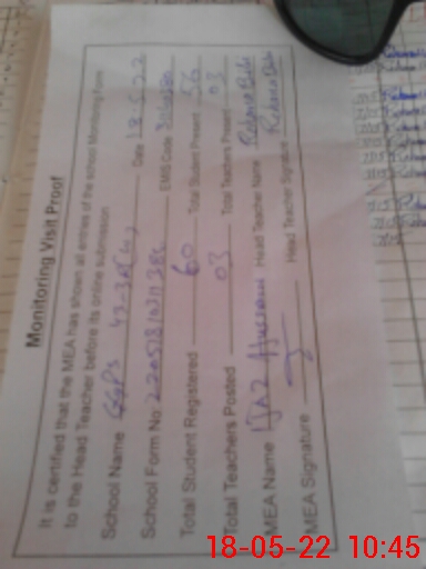 | Certified that this School was Inspected by the Undersigned MEA/DMO Today and the Information Stated Above is as Per Record. | |||||