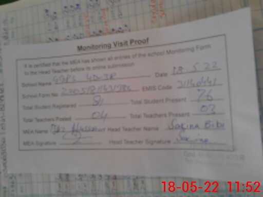 | Certified that this School was Inspected by the Undersigned MEA/DMO Today and the Information Stated Above is as Per Record. | |||||