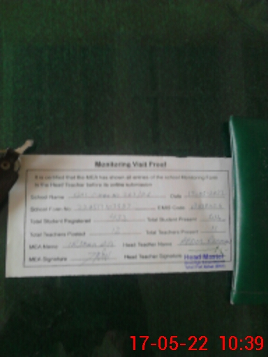 | Attendance Register | Head Teacher | MEA with School | Visit Proof |