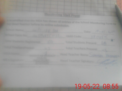 | Certified that this School was Inspected by the Undersigned MEA/DMO Today and the Information Stated Above is as Per Record. | |||||