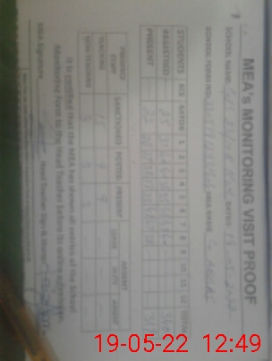 | Certified that this School was Inspected by the Undersigned MEA/DMO Today and the Information Stated Above is as Per Record. | |||||